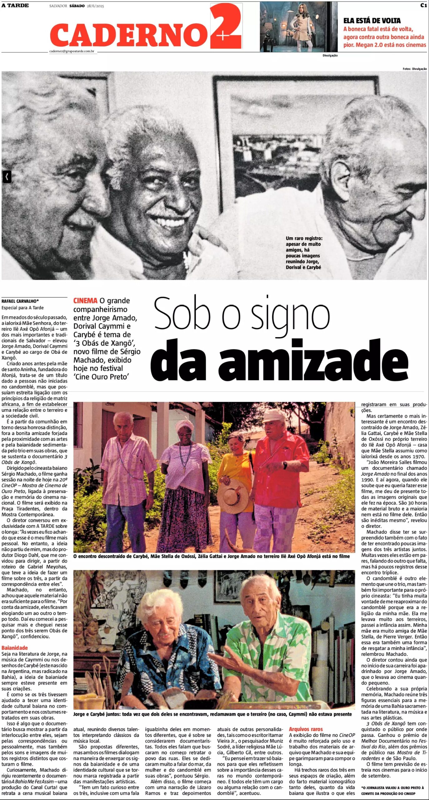 O diretor contou ainda que no início de sua carreira foi apadrinhado por Jorge Amado, que o levava ao cinema quando pequeno. Celebrando a sua própria memória, Machado reúne três figuras essenciais para a memória de uma Bahia sacramentada na literatura, na música e nas artes plásticas.